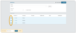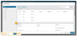 You can merge a group of two or more authors. Before merging, you select one author from the group to keep. This is the primary author. The remaining authors are treated as duplicates. When you merge a group of authors: